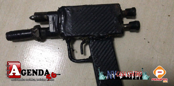 El informe policial establece que el arma es de “doble cañón”, preparada para disparar cápsulas calibre nueve milímetro.