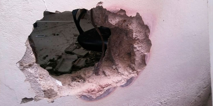 Los individuos penetrando por la parte trasera del establecimiento, rompiendo la pared, para luego violar una caja fuerte de donde sustrajeron el botín.