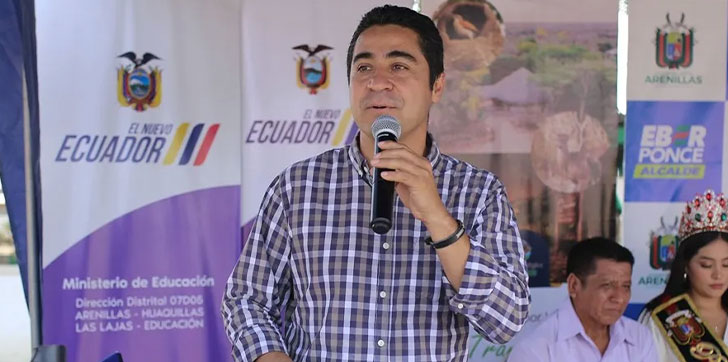 Eber Ponce, alcalde de Arenillas, municipio de Ecuador muy cercano a la frontera con Perú, fue asesinado este sábado tras recibir cinco disparos en un atentado perpetrado por presuntos sicarios, quienes lo dejaron herido en un primer momento pero horas después falleció en el hospital donde recibía asistencia.