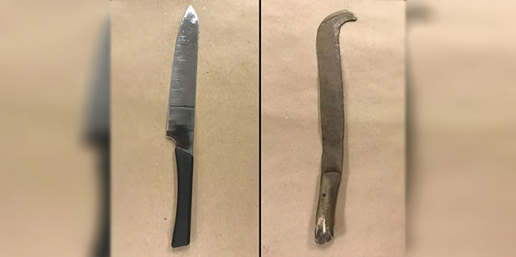 El sospechoso, quien no fue identificado de inmediato, fue llevado al Hospital Brookdale en condición estable. El machete y el cuchillo fueron recuperados en el lugar, según fotos policiales.