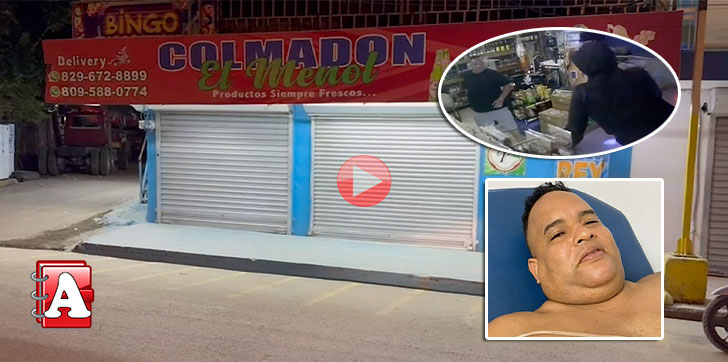 El hecho quedó captado por una cámara de vigilancia del colmadón El Menol, cuyas imágenes muestran como el delincuente disparó contra el comerciante que simuló tener una arma de fuego.