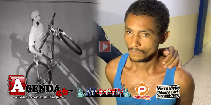 SAN FRANCISCO DE MACORÍS.– Fue puesto bajo arresto, un hombre que presuntamente quedó captado por cámaras de vigilancia al momento que sustrae una bicicleta y un par de zapatos del interior de una vivienda.