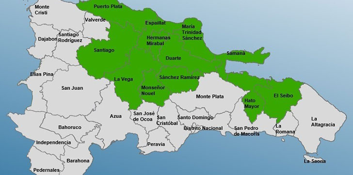 En un boletín especial, el Centro de Operaciones de Emergencias (COE) detalla que las provincias en alerta meteorológica son Puerto Plata, Duarte, La Vega, Espaillat, Samaná, Monseñoul Nouel, Hermanas Mirabal, Santiago, Sánchez Ramírez, María Trinidad Sánchez y Hato Mayor.