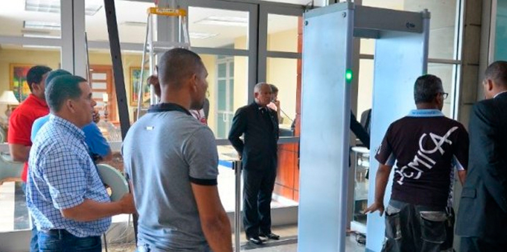 Como parte de las nuevas medidas se colocó un detector de armas de fuego y metales en la entrada del antedespacho del procurador, Jean Alain Rodríguez, zona que fue ocupada por los jóvenes que dijeron ser estudiantes.