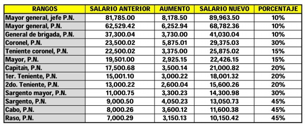Una relación con los incrementos salariales, que se ha hecho pública, notificada por la Dirección General de la Policía Nacional, indica los nuevos sueldos. Según anunció el ministro de Hacienda el pasado 27 de enero, el alza se materializará en la nómina de febrero y será retroactiva a enero.