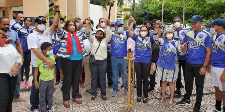 Autoridades de la UASD SFM recibem antorcha de los XL juegos Tony Barreiro