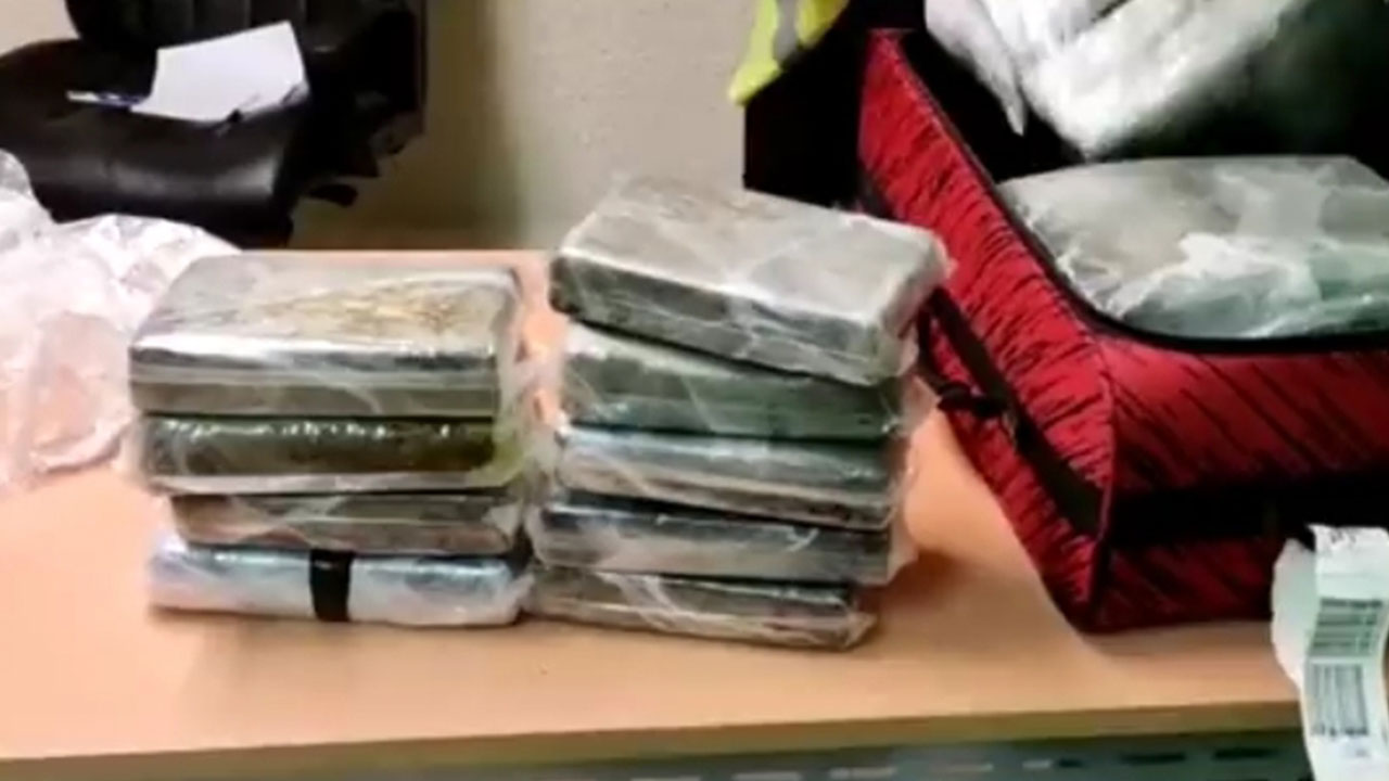 En presencia del Ministerio Público se procedió a requisar las maletas en cuyo interior se ocuparon 50 paquetes de la sustancia, con un peso preliminar de 53 kilogramos.