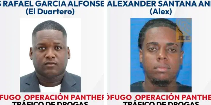 A través de carteles de «se busca» las autoridades identificaron a José Alexander Santana Andujar (Alex) y Luis Rafael García Alfonseca (el Duartero), ambos señalados en el expediente como miembros de la estructura criminal a la que se le decomisó las 9.8 toneladas de cocaína a principios de diciembre en el Puerto Multimodal Caucedo.