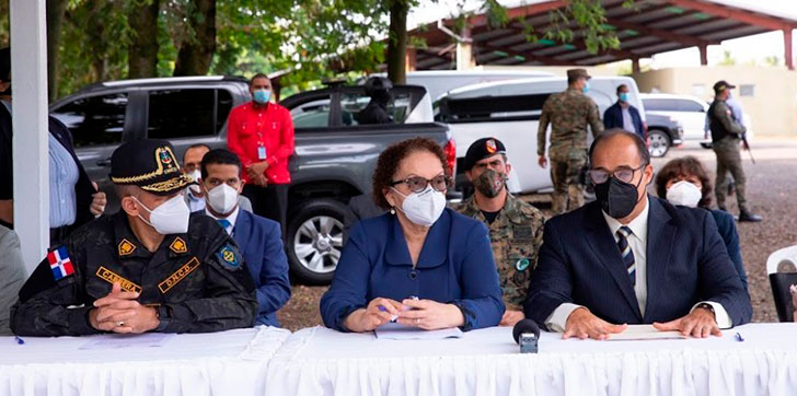 La procuradora general de la República, Miriam Germán Brito; el presidente de la Dirección Nacional de Control de Drogas (DNCD), contralmirante José Manuel Cabrera Ulloa, y el titular de la Dirección Central Antinarcóticos (Dican), general Valentín Rosado Vicioso, encabezaron el acto de destrucción de las drogas narcóticas en el marco de las acciones que llevan a cabo de manera conjunta para enfrentar ese flagelo del crimen organizado.