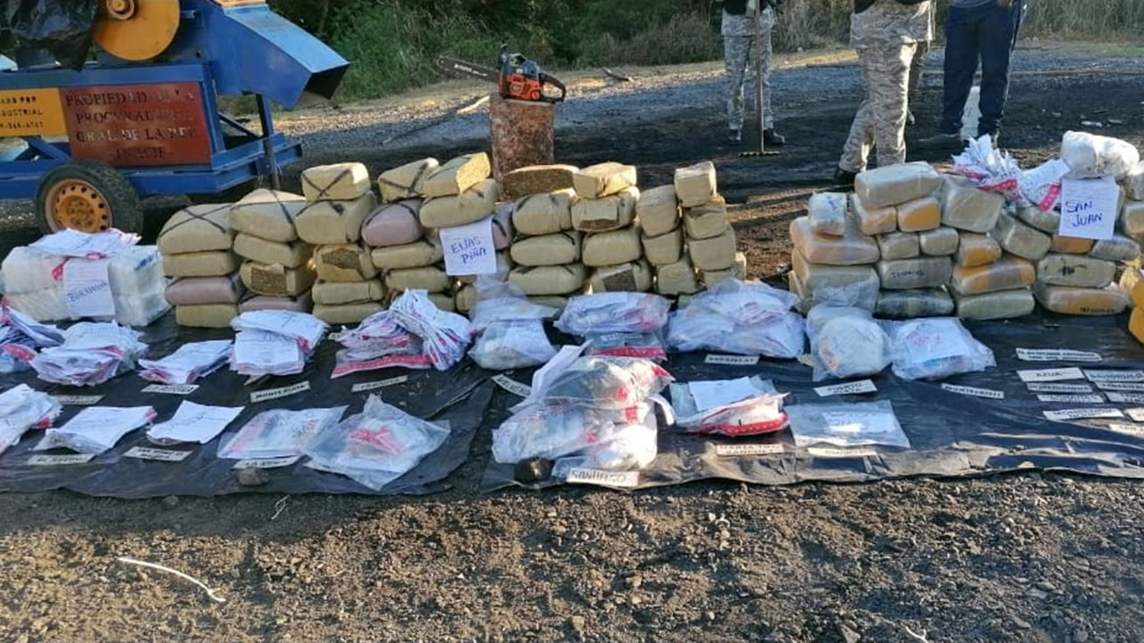 El Instituto Nacional de Ciencias Forenses (Inacif) certificó, mediante acta, que los narcóticos incluyeron 550.98 kilogramos de cocaína, con 64.16%, y de marihuana 307.41 kilogramos, para un 35.8%. También de crack, 267 gramos, con un 0.03%; de hachís, 35 gramos, para un 0.0041%; mientras que de éxtasis 17 gramos, que equivalen a 0.0020%.