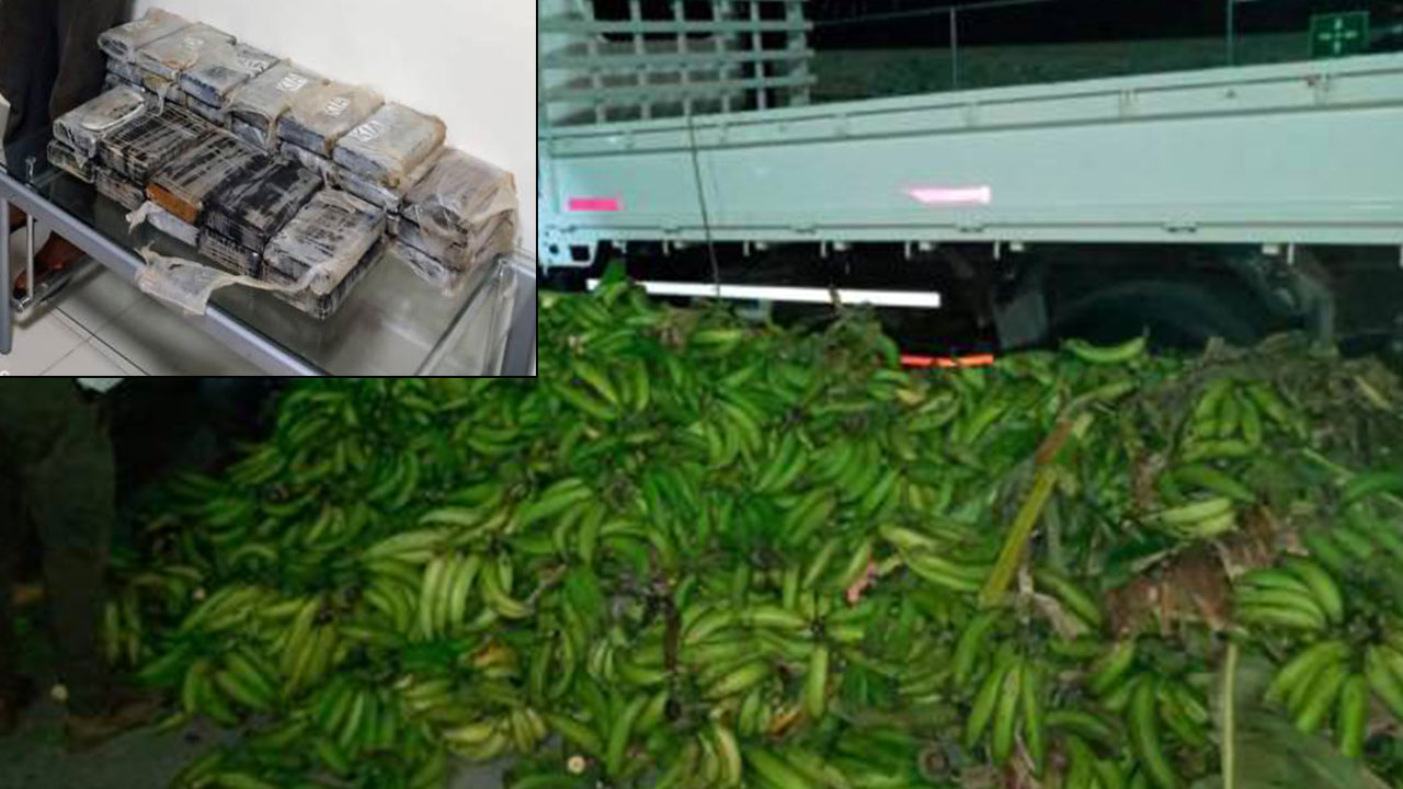 Autoridades ocupan 37 paquetes de droga escondidos dentro de carga de plátano