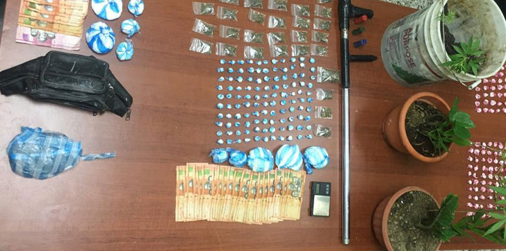 En el lugar fueron ocupadas 170 gramos de marihuana, 1,214 gramos de cocaína, dos balanzas, una pistola, una chilena, dinero en efectivo y resultaron cuatro personas detenidas.