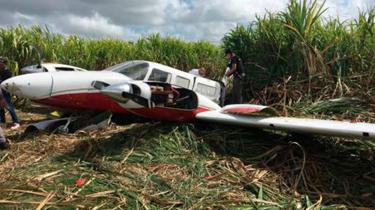 La aeronave fue hallada abandonada y accidentada en unos cañaverales. Se trata de una Piper Seneca II, tipo 810C, de matrícula brasileña, PT-EGU.