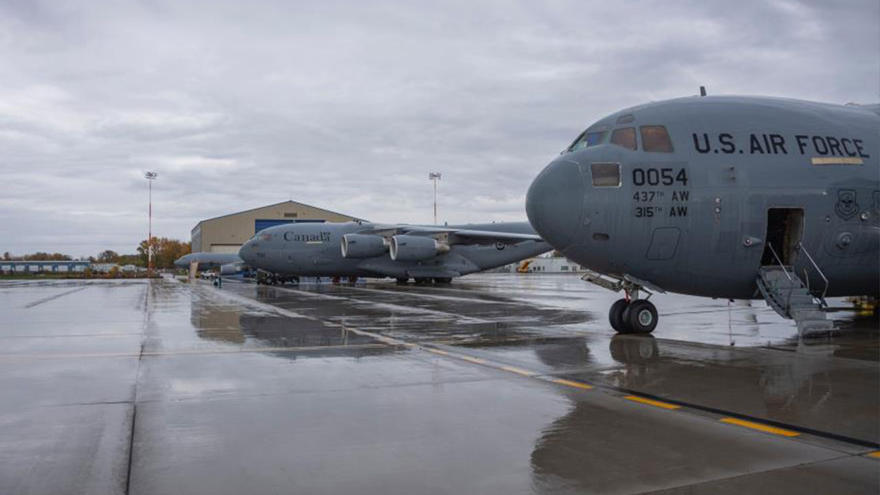 Las primeras imágenes de los aviones surgieron el domingo, cuando se reportó un avión carguero con el letrero US Air Force.