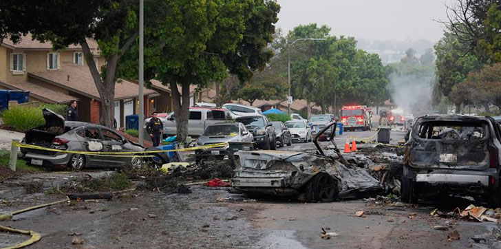 SAN DIEGO.- Una tragedia aérea sacudió el vecindario de Murphy Canyon, en San Diego, Estados Unidos, cuando un avión Cessna 550 se estrelló poco antes de las 4:00 a. m., provocando una enorme explosión que incendió 15 viviendas y numerosos vehículos. El siniestro causó la muerte de dos personas a bordo del avión y dejó al menos ocho heridos, uno de ellos hospitalizado.
