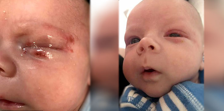 Días después, la condición de Noah empeoró, y Ashleigh vio más ampollas alrededor del ojo del bebé. Lo llevó rápidamente al bebé, temiendo que pudiera ser herpes, una infección que se puede transmitir a través del contacto labial.