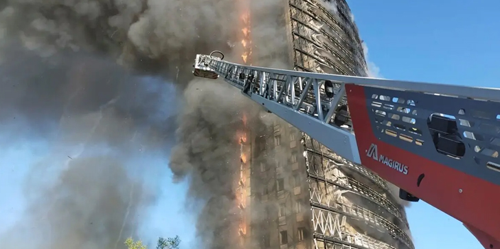 Bomberos combaten incendio en un rascacielos en Milán