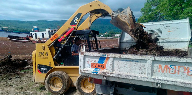 “Iniciamos este trabajo retirando las algas que ya han recopilados nuestras brigadas y luego son recogidas por un camión del ministerio”, explicó.