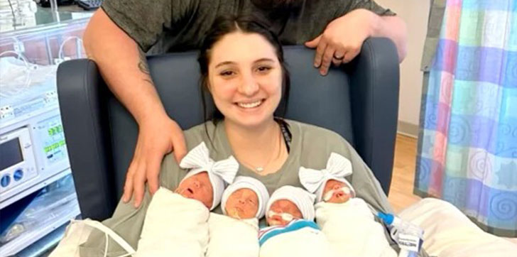 ALABAMA- Hannah y Michael Carmack, una pareja residente en Gadsden, Alabama, Estados Unidos, se convirtieron en padres de cuatrillizos en un evento tan raro que los médicos calculan que las posibilidades eran de una en casi 700.000. Lo inusual de este caso no radica únicamente en la concepción espontánea de cuatrillizos, sino en que se trató dedos pares de gemelos idénticos: dos niñas y dos niños.