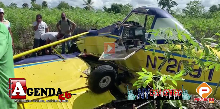 DUARTE.– Una avioneta que realizaba labores de fumigación en una finca de yuca, se precipitó la mañana de este martes en la comunidad Los Indios del Distrito Municipal de Cenoví, en la carretera que comunica con el municipio de Villa Tapia.