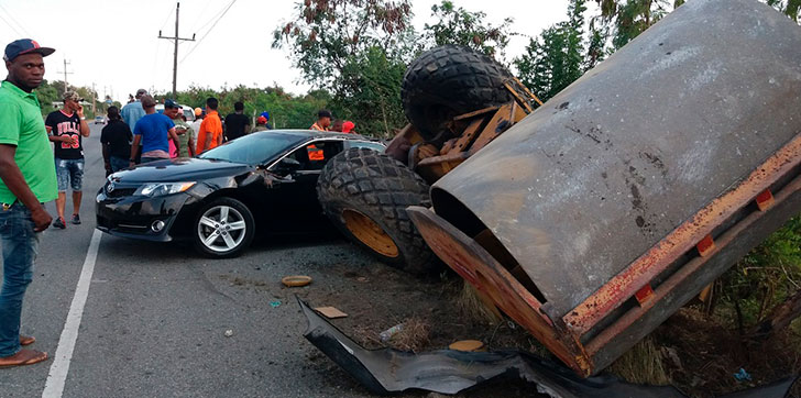 AGENDA56, SAN JUAN DE LA MAGUANA.- Dos personas salvaron la vida milagrosamente momentos en que un rodillo que era transportado en una patana se zafó de las cadenas cayéndole casi encima al carro, hecho ocurrido ayer en el kilómetro 9 entrada de las Zanjas, en la provincia San Juan.