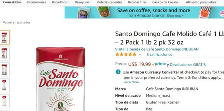 Precisó que Industrias Banilejas y su marca líder Café Santo Domingo tenían ya presencia en  Estados Unidos y muy específicamente en las comunidades de gran población dominicana concentradas en la costa este desde Nueva Inglaterra hasta Florida, lo que hacemos ahora es garantizar el acceso a cualquier ciudadano que utilice la plataforma de Amazon.