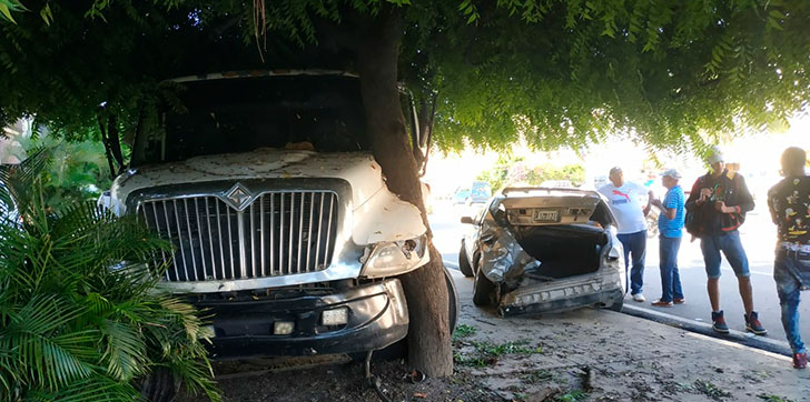 El accidente se produjo cuando el chofer del camión perdió el control del vehículo cuando una pieza del volante se salió de su centro e impactó a tres automóviles que estaban estacionados en el parqueo de los edificios 40 y 41 de la citada vía.