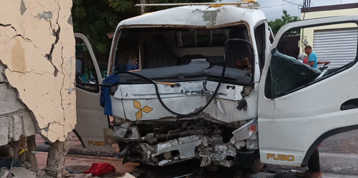 BARAHONA.- La mañana de este domingo conductor de un camión impacto una pared delantera de una vivienda, en un hecho ocurrido pasada las 6:20 a.m. en la avenida Antonio Mendez, próximo a la Universidad de Santo Domingo (UASD) en Barahona.