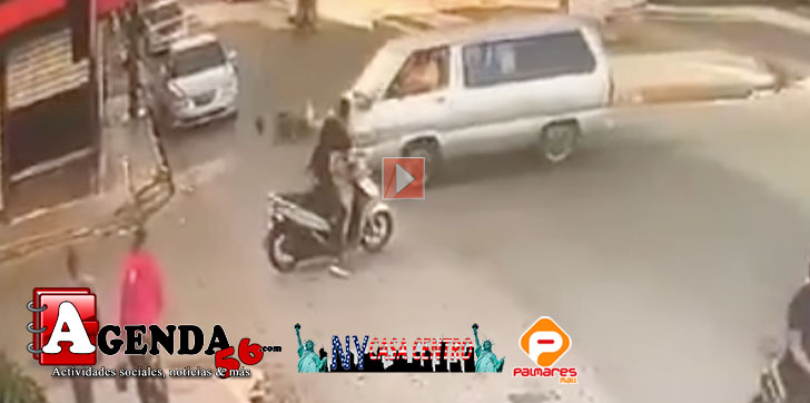 En las imágenese se puede observar el momento que el motorista se deslizó en la intersección de la Ingeniero Guzman Abreu, esquina avenida Libertad de esta localidad.