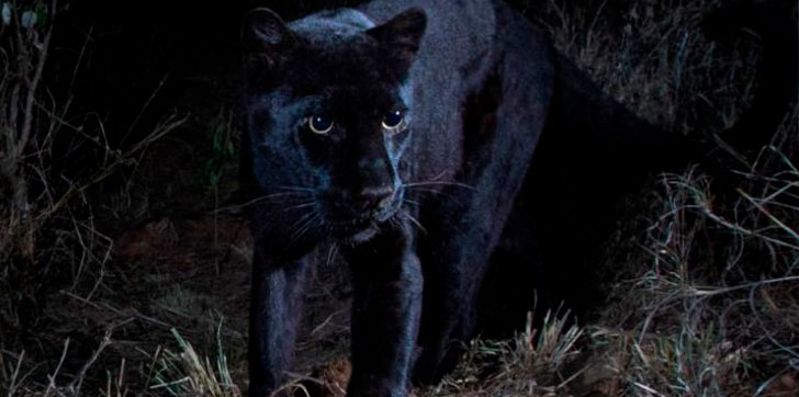 El color del pelaje del leopardo hembra es negro como el azabache, como resultado del melanismo, una mutación genética que resulta en una sobreproducción de pigmento, dijo Pilfold. Es lo opuesto al albinismo, y aunque el pelaje del leopardo se ve negro durante el día, sus patrones en forma de rosa son visibles en las imágenes infrarrojas nocturnas.