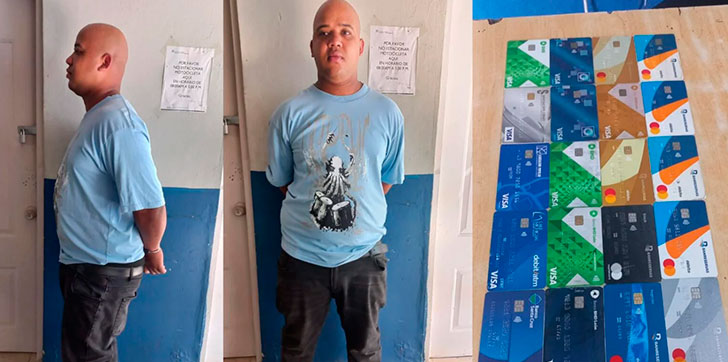 El detenido, identificado como Roberto Antonio Araujo, de 28 años y residente en Los Alcarrizos, a quien sorprendieron por una patrulla policial cuando realizaba maniobras fraudulentas en un cajero automático del Banco de Reservas. De acuerdo con las autoridades, momentos antes había estafado a un ciudadano.