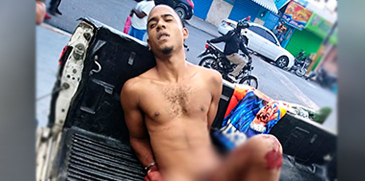 Se trata de Yeison Mejia (El Morenito), de 21 años de edad, quien al momento de su arresto resultó con heridas de bala en ambas piernas, por lo que fue trasladado al Hospital Juan Pablo Pina, donde recibe asistencia.