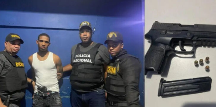 Al momento de su apresamiento, a Diablón se le ocupó una pistola marca Sig-Sauer calibre 9 milimetros con (04) cápsulas. El presunto antisocial obtuvo el arma mediante atraco al primer teniente de la Policía Nacional Angelin Laureano Duran, herido de bala en un hecho registrado la mañana de este lunes 5 de diciembre, en la calle 23 esquina 14 del sector Pueblo Nuevo.