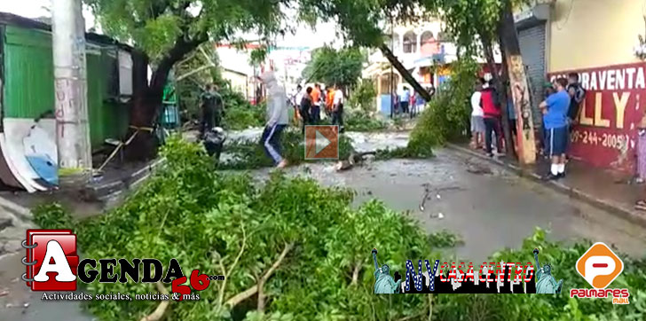 Dos pasolas y una vivienda afectada al caer poste de luz y árbol por fuerte viento en SFM
