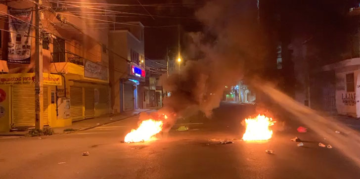 Quema de neumáticos, basuras en la vía y detonaciones de disparos anoche en SFM