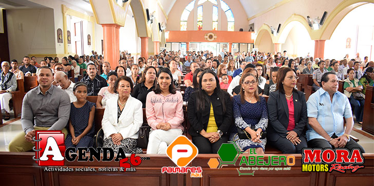 El senador Amilcar Romero y la directora regional de educación Mariel Santos Mora, encabezaron la actividad religiosa celebrada en la catedral Santa Ana de esta ciudad de San Francisco de Macorís.