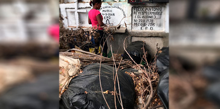 Imágenes enviadas a ElPuenteDigital muestran como el gran cúmulo de basura, hace casi imposible acceder hasta los Nichos, donde reposan los restos de varias familias.