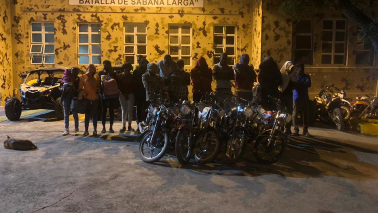 El Cesfront también detuvo a 16 nacionales haitianos por encontrarse en estatus migratorio irregular, los cuales se trasladaban abordo de cinco motocicletas en Dajabón.