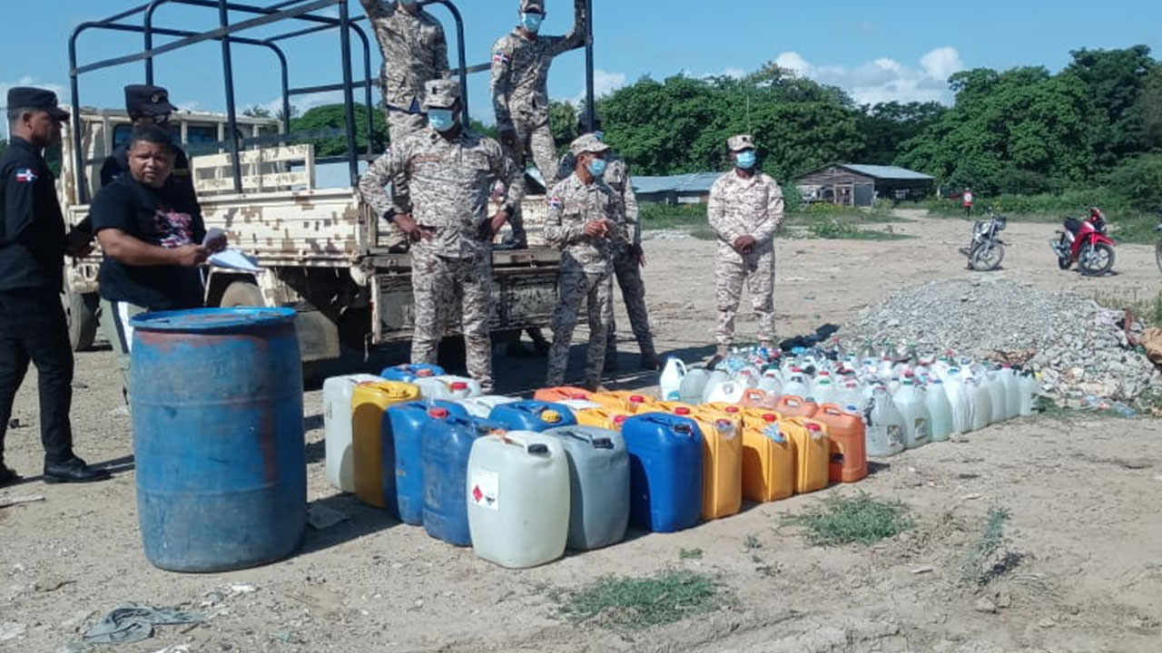 En la provincia de Dajabón se incautaron 281 galones, en Elías Piña 200 y en Pedernales 144, demarcaciones donde se desarrolló esta actividad.