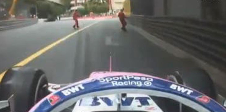 EUROPA.- Un accidente fue evitado por poco entre el Racing Point del piloto mexicano Sergio Pérez y dos comisarios de pista, el domingo en el Gran Premio de Mónaco.