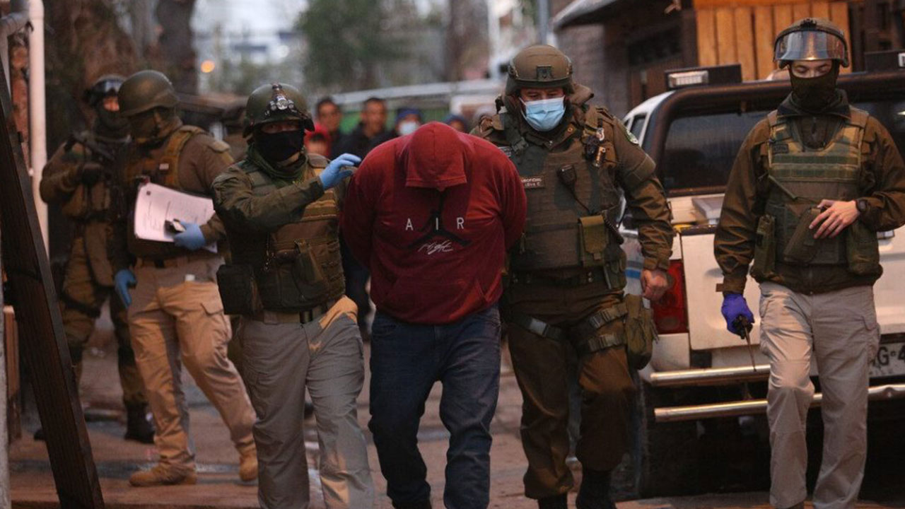 CHILE- Un total de 25 miembros de una peligrosa banda de narcotraficantes, incluido su líder “El Makako”, fueron detenidos en una gran operación policial en la que se allanaron una treintena de edificios en Santiago, informaron este miércoles las autoridades chilenas.