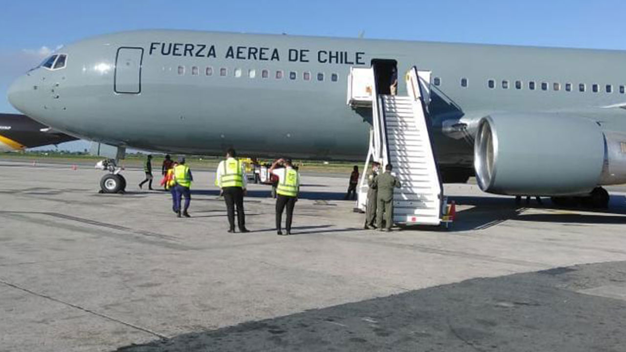 Los criollos sacados a la fuerza de Chile fueron transportados en un avión de la Fuerza Aérea Chilena, un Boeing 767, matrícula FACH-985, el mismo aterrizó en Colombia para abastecerse de combustible y proceder a República Dominicana.