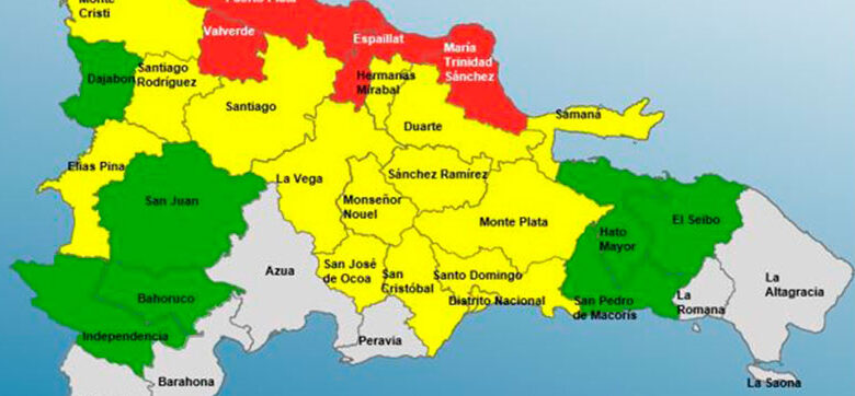 En alerta verde figuran Hato Mayor, San Pedro de Macorís, Dajabón, Independencia, El Seibo, San Juan y Bahoruco.