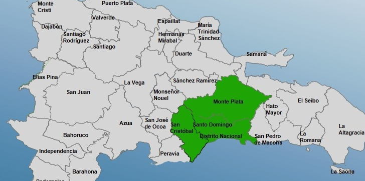 Las provincias en alerta son: Santo Domingo, San Cristóbal, Monte Plata y el Distrito Nacional.