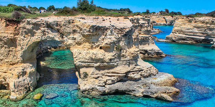 La estructura, formada por la acción erosiva del viento y el mar durante siglos, era un puente de roca blanca que unía dos columnas frente a la playa principal de Torre Sant’Andrea en Melendugno.