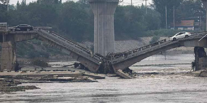 Colapso de un puente en China provocó caída al río de 17 autos y 8 camiones