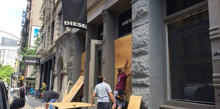 Se pueden observar negocios como la gigante tienda de Macy´s, ubicada en downtown Manhattan, forrada para evitar los daños en su estructura, totalmente acristalada.
