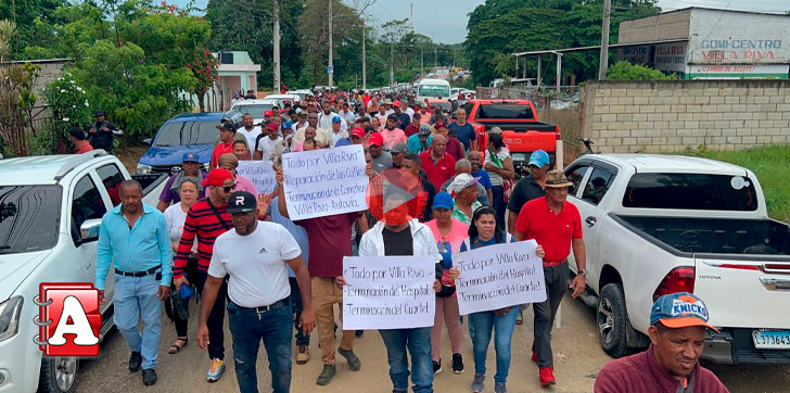 DUARTE.- Decenas de comunitarios del municipio Villa Riva desafiaron la lluvia y marcharon este lunes en demanda de la construcción de las calles, terminación del hospital y el destacamento policial, así como la construcción de la carretera Villa Riva-Autovía del Nordeste y Majagual-Loma Colorada, entre otras reivindicaciones.