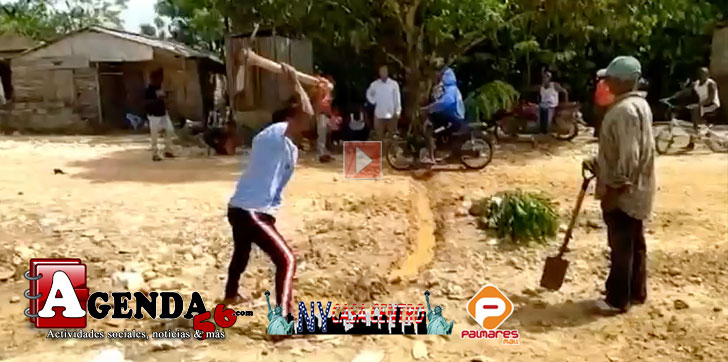DUARTE.– Comunitarios de Polvorín en el municipio Villa Riva, se vieron obligados a romper la carretera para drenar el agua y evitar se inunden algunas viviendas de esta localidad.