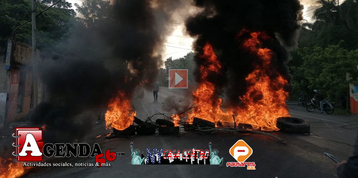 Los protestantes lanzaron escombros a la carretera principal del Distrito Municipal de Cenoví, donde obstaculizaron el tránsito con quema de neumáticos.